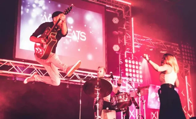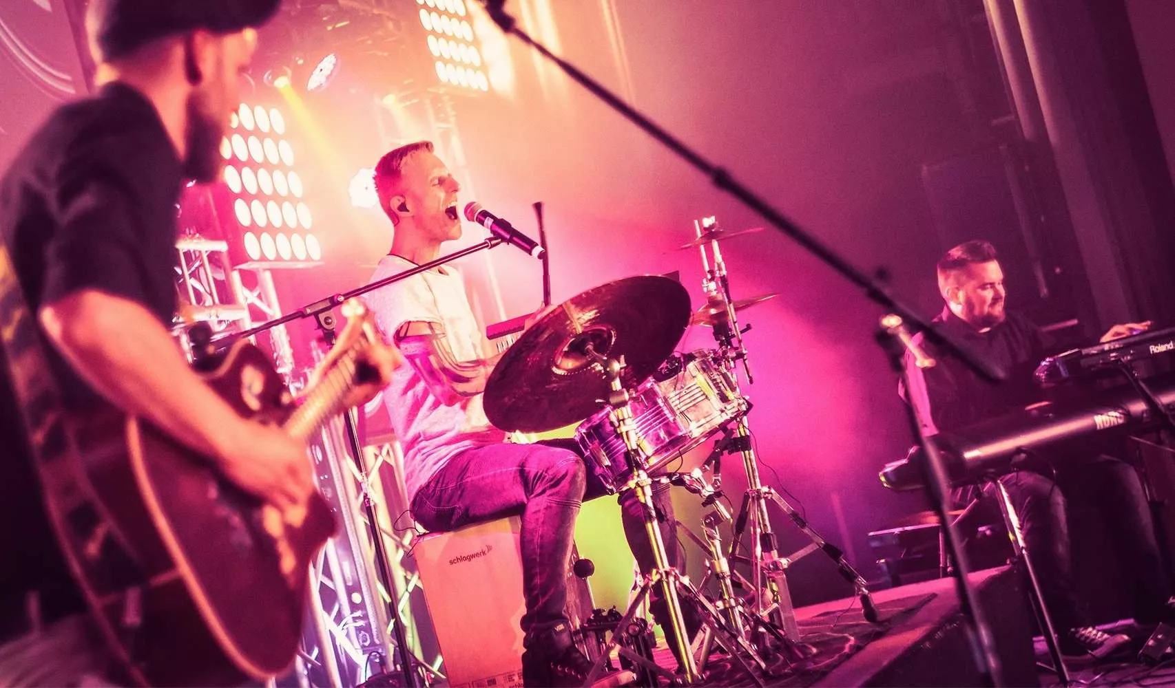 Nachdem der DJ den Einlass begleitet hat, folgt der Auftritt der Main-Band 'PINK PANTA'. Wir hoffen die Sitzplätze sind nur Deko...